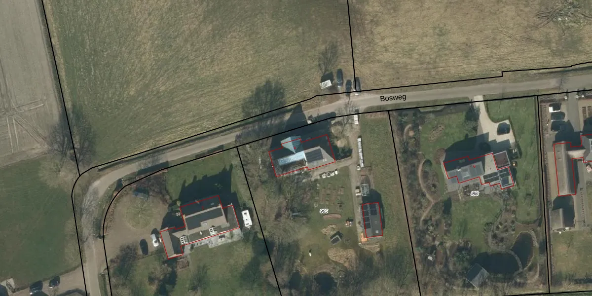 Het perceel waarop Bosweg 4 staat heeft een oppervlakte van 3265 m². Dit is een zeer groot perceel. De perceeloppervlakte wordt geregistreerd door het Kadaster. Gedetailleerde informatie over de maten van dit perceel kunt u vinden in het rapport Kadastrale kaart met maatvoering van Bosweg 4.