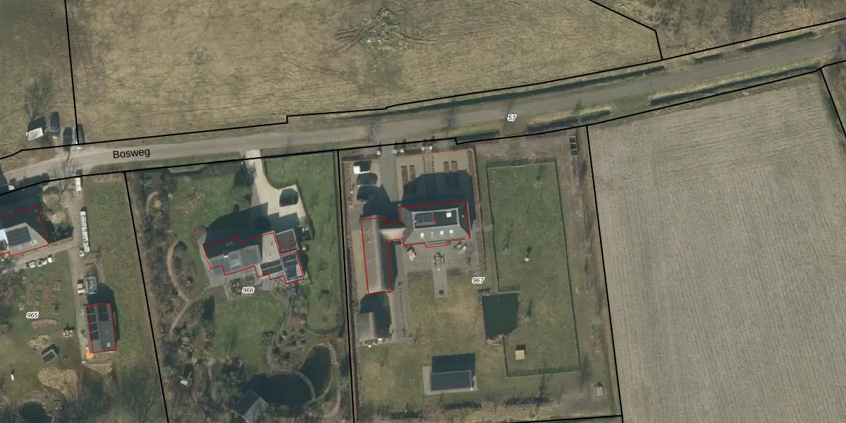 Het perceel waarop Bosweg 8 staat heeft een oppervlakte van 4145 m². Dit is een zeer groot perceel. De perceeloppervlakte wordt geregistreerd door het Kadaster. Gedetailleerde informatie over de maten van dit perceel kunt u vinden in het rapport Kadastrale kaart met maatvoering van Bosweg 8.