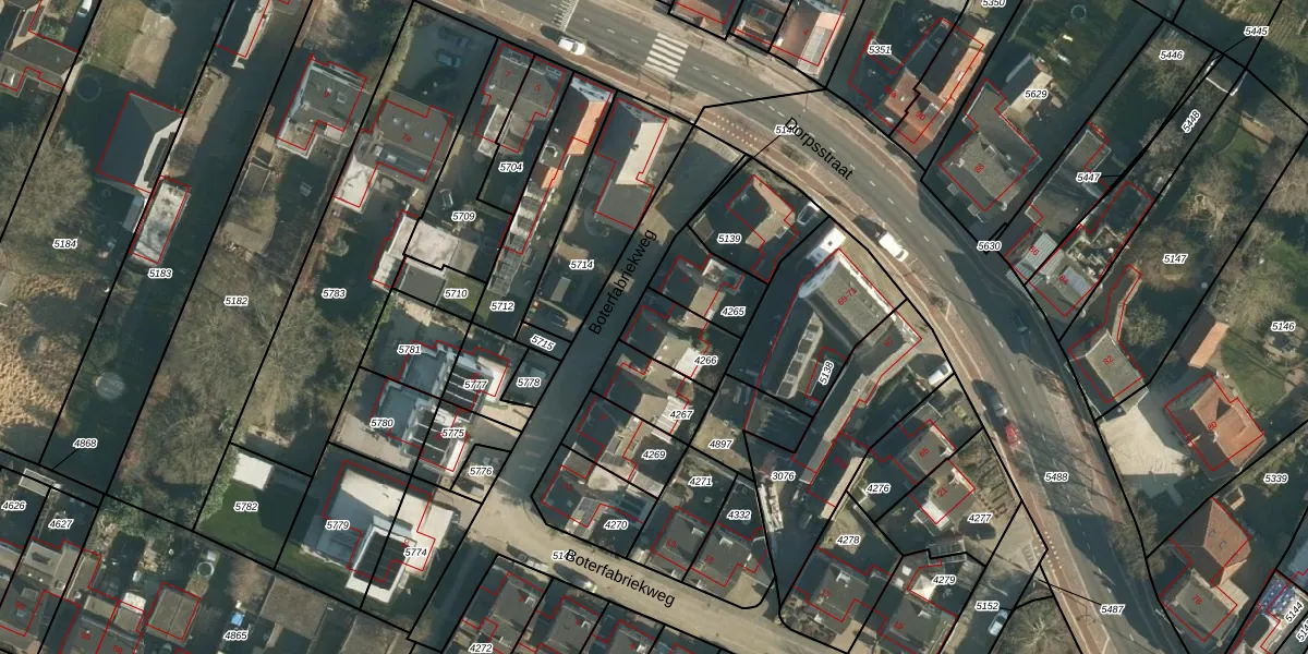 Boterfabriekweg 5 is gelegen op kadastraal perceel CHA00E4266. Deze kadastrale aanduiding is uniek en wordt gebruikt door het Kadaster om eigendomsrechten en andere zakelijke rechten vast te leggen. Het perceel maakt onderdeel uit van de kadastrale gemeente Chaam.