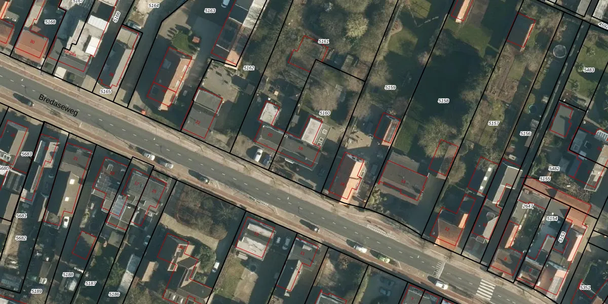Het perceel waarop Bredaseweg 18 staat heeft een oppervlakte van 731 m². Dit is een groot perceel. De perceeloppervlakte wordt geregistreerd door het Kadaster. Gedetailleerde informatie over de maten van dit perceel kunt u vinden in het rapport Kadastrale kaart met maatvoering van Bredaseweg 18.