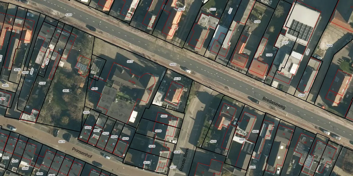 Het perceel waarop Bredaseweg 31 staat heeft een oppervlakte van 360 m². Dit is een groot perceel. De perceeloppervlakte wordt geregistreerd door het Kadaster. Gedetailleerde informatie over de maten van dit perceel kunt u vinden in het rapport Kadastrale kaart met maatvoering van Bredaseweg 31.