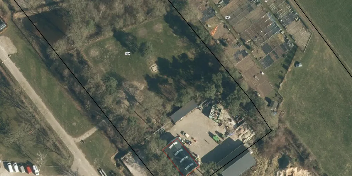 Het adres ligt op het perceel CHA00-C-859, dat zich in de kadastrale gemeente Chaam bevindt. Het perceel is met 1,2 ha relatief groot. Het gemiddelde ligt in de kadastrale gemeente Chaam op 7519,42 m². Het kleinste perceel in de kadastrale gemeente is 0 m² groot. De grootste perceeloppervlakte is 1,23 km². Op het perceel liggen in totaal 12 adressen. De huidige grenzen van het perceel zijn digitaal in de Basisregistratie Kadaster (BRK) geregistreerd op 28-02-2011.