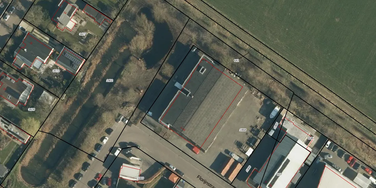 Het perceel waarop Florijnstraat 1-a staat heeft een oppervlakte van 2900 m². Dit is een zeer groot perceel. De perceeloppervlakte wordt geregistreerd door het Kadaster. Gedetailleerde informatie over de maten van dit perceel kunt u vinden in het rapport Kadastrale kaart met maatvoering van Florijnstraat 1-a.