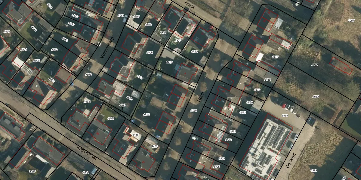 Het perceel waarop Horst 7 staat heeft een oppervlakte van 849 m². Dit is een groot perceel. De perceeloppervlakte wordt geregistreerd door het Kadaster. Gedetailleerde informatie over de maten van dit perceel kunt u vinden in het rapport Kadastrale kaart met maatvoering van Horst 7.