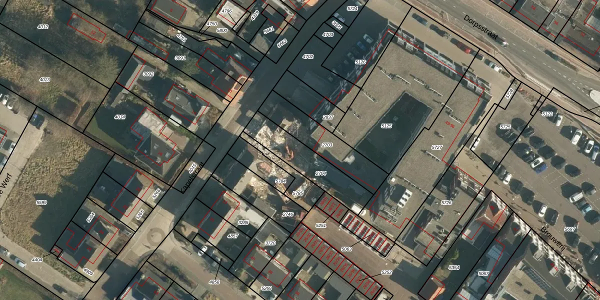 Het perceel waarop Kapelstraat 3-c staat heeft een oppervlakte van 405 m². Dit is een groot perceel. De perceeloppervlakte wordt geregistreerd door het Kadaster. Gedetailleerde informatie over de maten van dit perceel kunt u vinden in het rapport Kadastrale kaart met maatvoering van Kapelstraat 3-c.