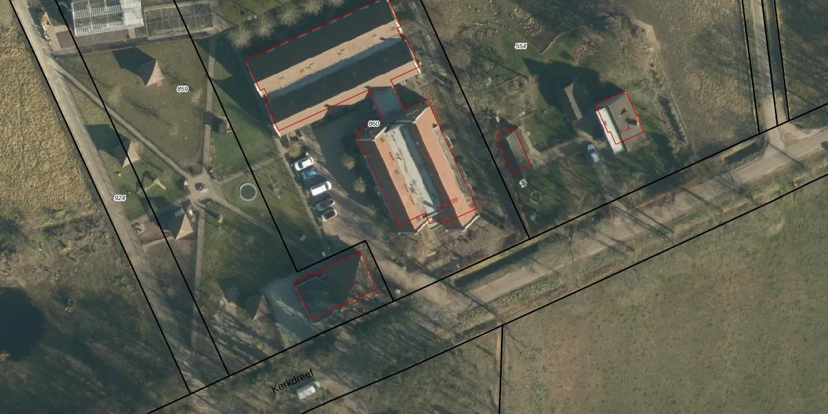 Kerkdreef 1-03 is gelegen op kadastraal perceel CHA00K860. Deze kadastrale aanduiding is uniek en wordt gebruikt door het Kadaster om eigendomsrechten en andere zakelijke rechten vast te leggen. Het perceel maakt onderdeel uit van de kadastrale gemeente Chaam.