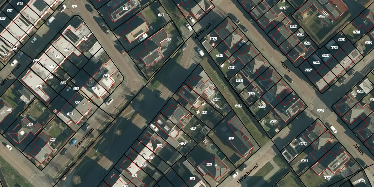 Het perceel waarop Markiezaat 3 staat heeft een oppervlakte van 284 m². Dit is een middelgroot perceel. De perceeloppervlakte wordt geregistreerd door het Kadaster. Gedetailleerde informatie over de maten van dit perceel kunt u vinden in het rapport Kadastrale kaart met maatvoering van Markiezaat 3.
