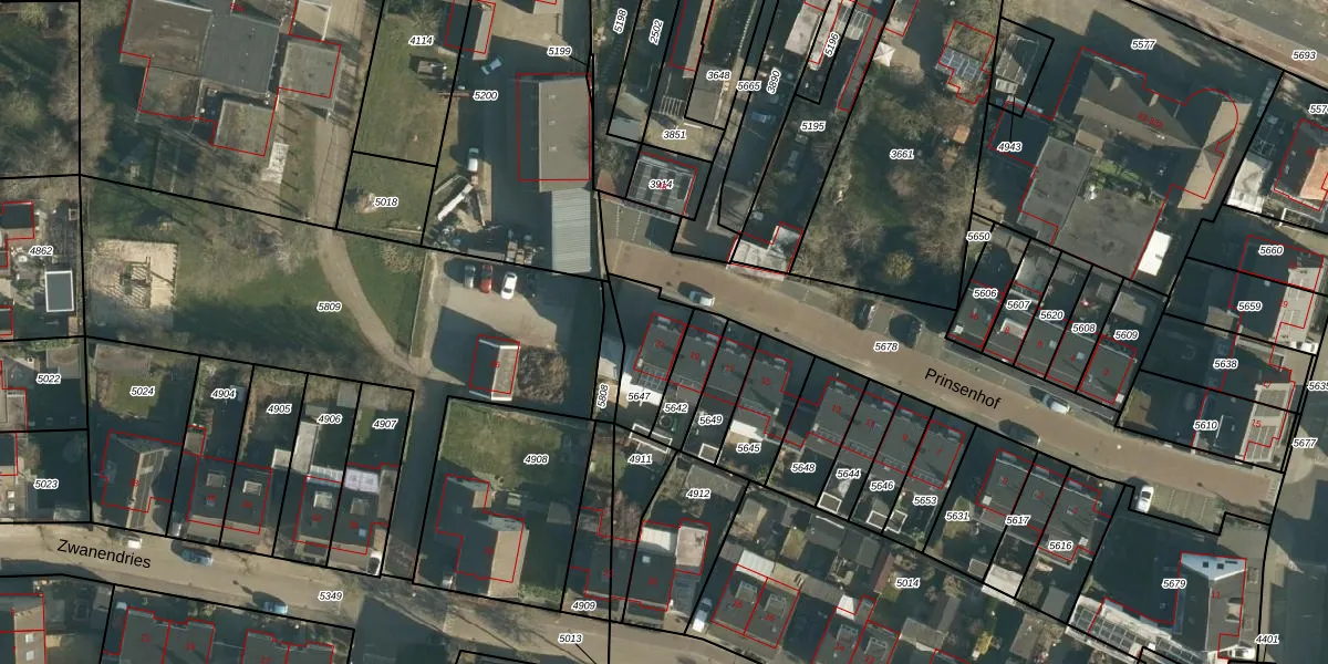 Het perceel waarop Prinsenhof 21 staat heeft een oppervlakte van 182 m². Dit is een middelgroot perceel. De perceeloppervlakte wordt geregistreerd door het Kadaster. Gedetailleerde informatie over de maten van dit perceel kunt u vinden in het rapport Kadastrale kaart met maatvoering van Prinsenhof 21.