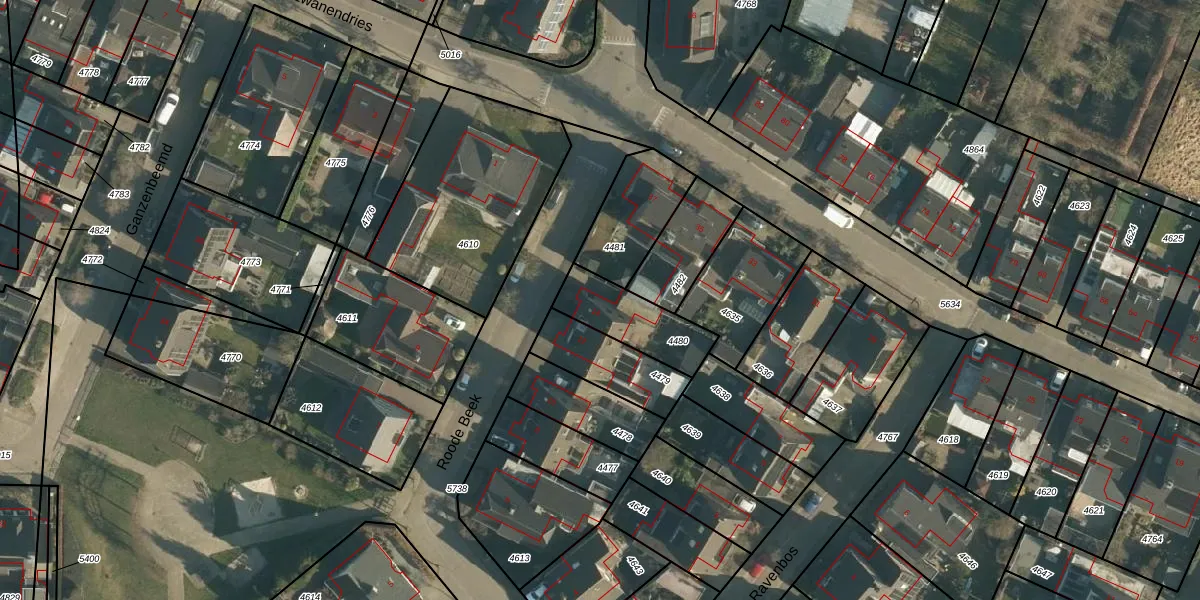 Gebruik de zoekbalk of klik op een perceel voor informatie over de adressen binnen dit perceel.