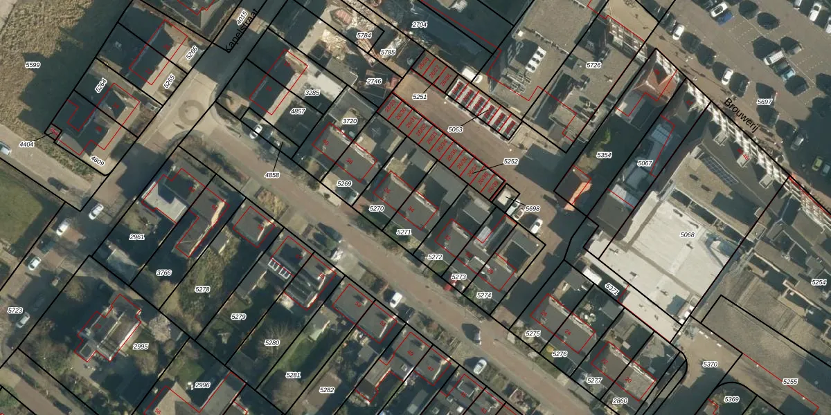 Gebruik de zoekbalk of klik op een perceel voor informatie over de adressen binnen dit perceel.