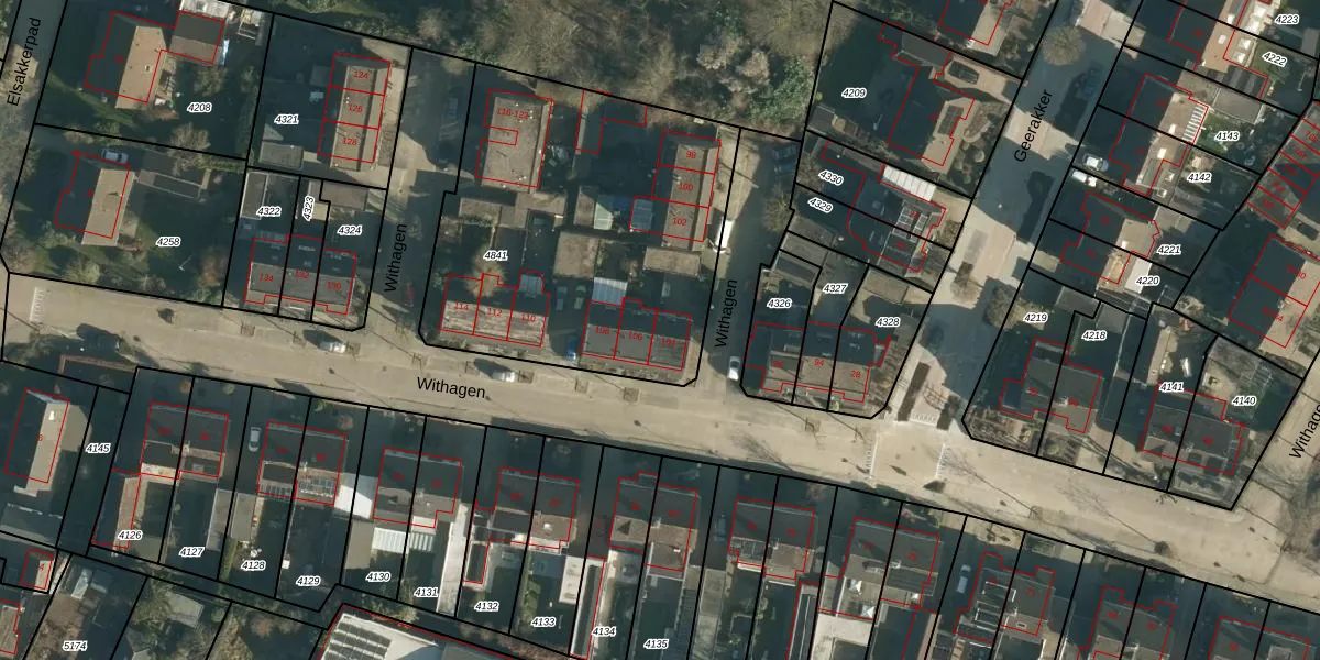 Het perceel waarop Withagen 104 staat heeft een oppervlakte van 1736 m². Dit is een zeer groot perceel. De perceeloppervlakte wordt geregistreerd door het Kadaster. Gedetailleerde informatie over de maten van dit perceel kunt u vinden in het rapport Kadastrale kaart met maatvoering van Withagen 104.