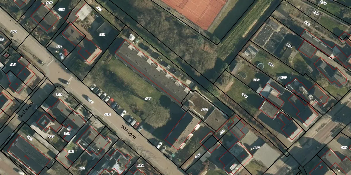 Het perceel waarop Withagen 40 staat heeft een oppervlakte van 3020 m². Dit is een zeer groot perceel. De perceeloppervlakte wordt geregistreerd door het Kadaster. Gedetailleerde informatie over de maten van dit perceel kunt u vinden in het rapport Kadastrale kaart met maatvoering van Withagen 40.