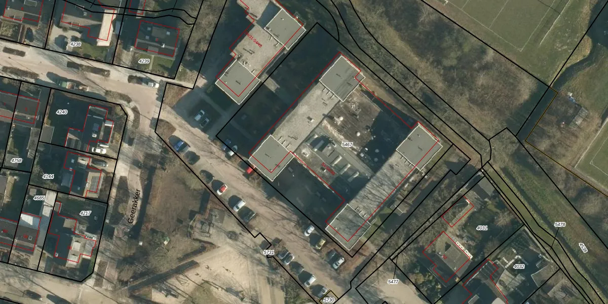 Het adres ligt op het perceel CHA00-E-5467, dat zich in de kadastrale gemeente Chaam bevindt. Het perceel is kleiner dan gemiddeld in Chaam. Het perceel is 3000 m² groot, terwijl het gemiddelde ligt op 7502,58 m². De grootste perceeloppervlakte in de kadastrale gemeente is 1,23 km². De kleinste oppervlakte bedraagt 0 m². Op het perceel zijn 32 adressen aanwezig. De laatste wijziging in het de Basisregistratie Kadaster (BRK) was op 18-02-2008.