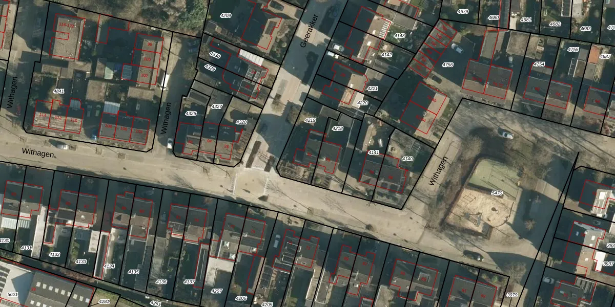 Het perceel waarop Withagen 92 staat heeft een oppervlakte van 296 m². Dit is een middelgroot perceel. De perceeloppervlakte wordt geregistreerd door het Kadaster. Gedetailleerde informatie over de maten van dit perceel kunt u vinden in het rapport Kadastrale kaart met maatvoering van Withagen 92.