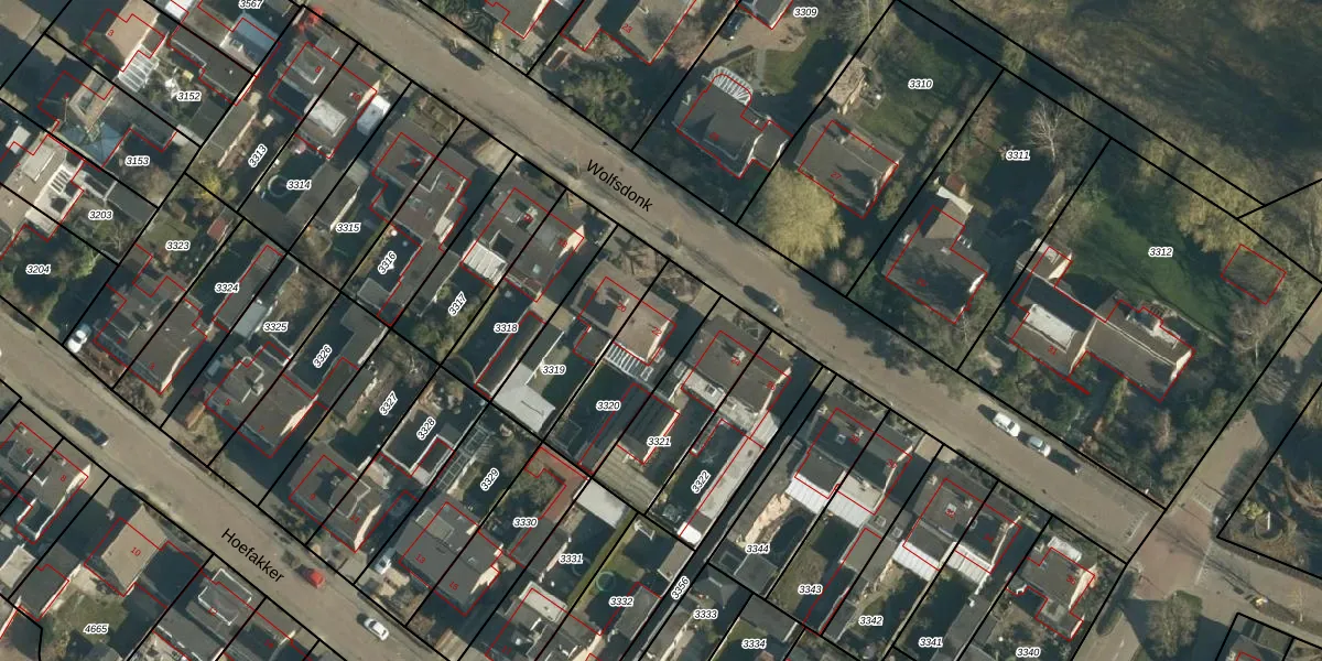 Het perceel waarop Wolfsdonk 22 staat heeft een oppervlakte van 315 m². Dit is een groot perceel. De perceeloppervlakte wordt geregistreerd door het Kadaster. Gedetailleerde informatie over de maten van dit perceel kunt u vinden in het rapport Kadastrale kaart met maatvoering van Wolfsdonk 22.