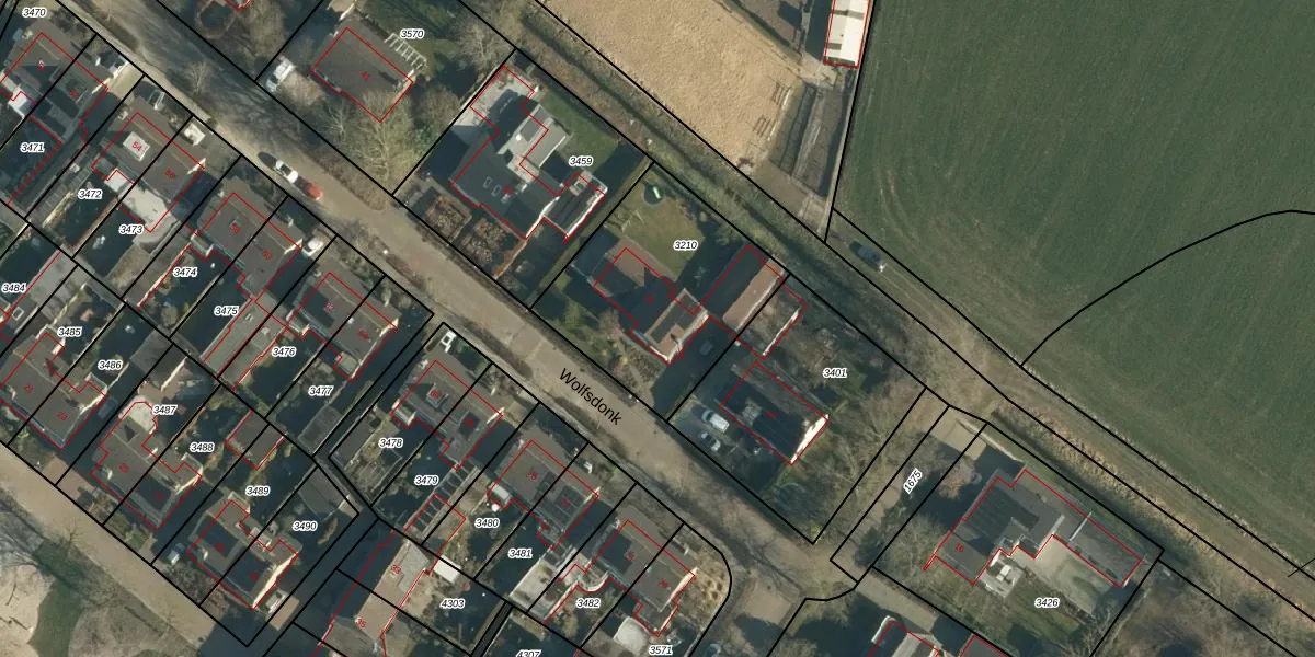 Het perceel waarop Wolfsdonk 45 staat heeft een oppervlakte van 795 m². Dit is een groot perceel. De perceeloppervlakte wordt geregistreerd door het Kadaster. Gedetailleerde informatie over de maten van dit perceel kunt u vinden in het rapport Kadastrale kaart met maatvoering van Wolfsdonk 45.