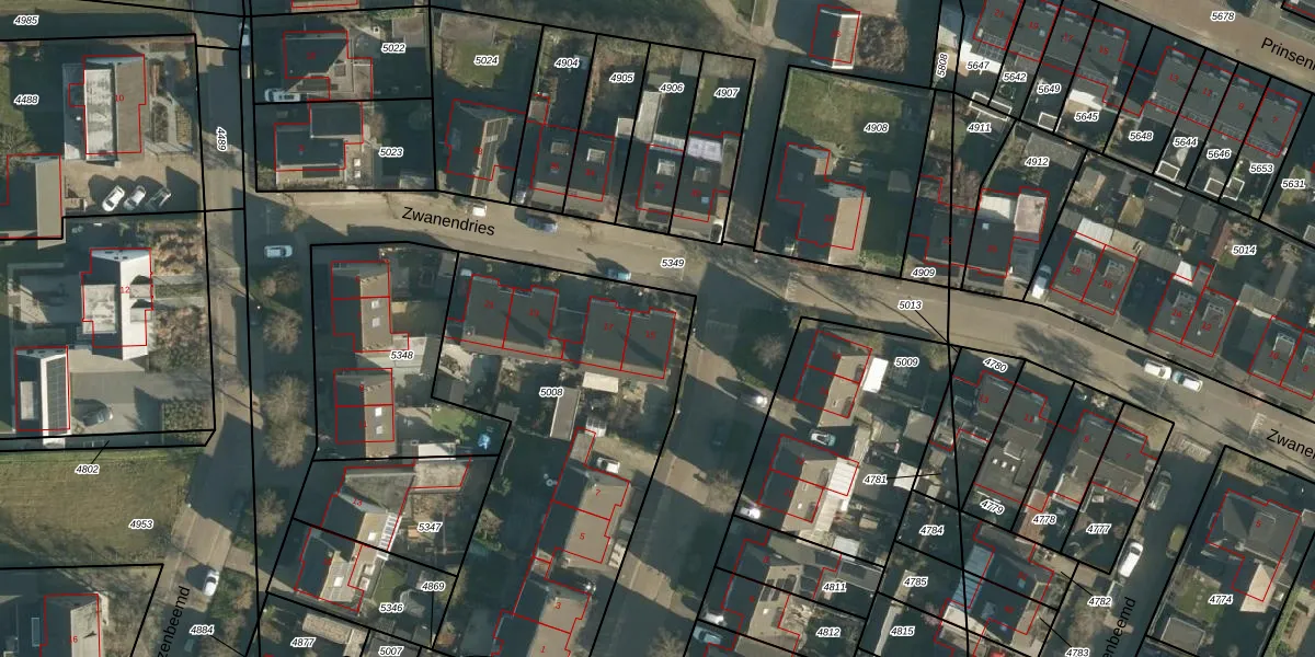 Zwanendries 15 is gelegen op kadastraal perceel CHA00E5008. Deze kadastrale aanduiding is uniek en wordt gebruikt door het Kadaster om eigendomsrechten en andere zakelijke rechten vast te leggen. Het perceel maakt onderdeel uit van de kadastrale gemeente Chaam.