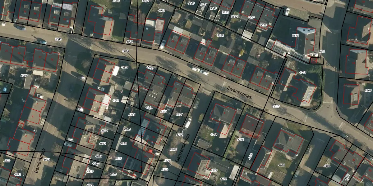 Gebruik de zoekbalk of klik op een perceel voor informatie over de adressen binnen dit perceel.
