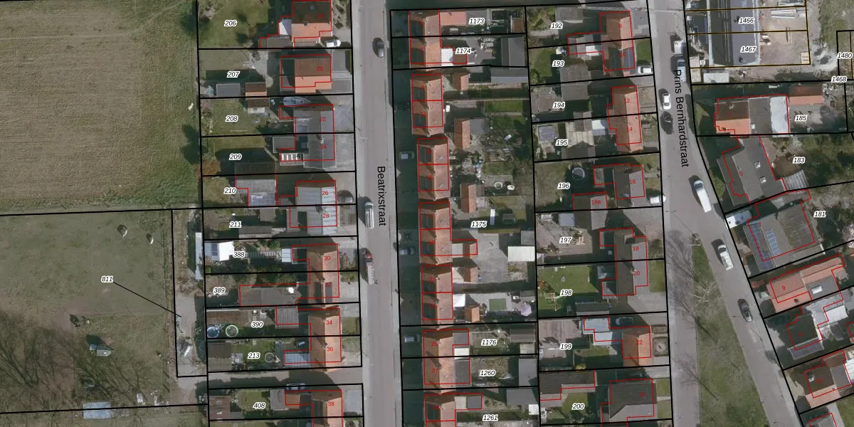 Het perceel waarop Beatrixstraat 17 staat heeft een oppervlakte van 1921 m². Dit is een zeer groot perceel. De perceeloppervlakte wordt geregistreerd door het Kadaster. Gedetailleerde informatie over de maten van dit perceel kunt u vinden in het rapport Kadastrale kaart met maatvoering van Beatrixstraat 17.
