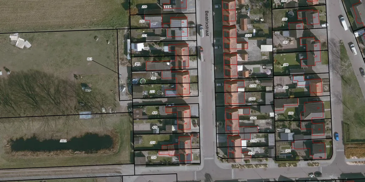 Het perceel waarop Beatrixstraat 36 staat heeft een oppervlakte van 275 m². Dit is een middelgroot perceel. De perceeloppervlakte wordt geregistreerd door het Kadaster. Gedetailleerde informatie over de maten van dit perceel kunt u vinden in het rapport Kadastrale kaart met maatvoering van Beatrixstraat 36.