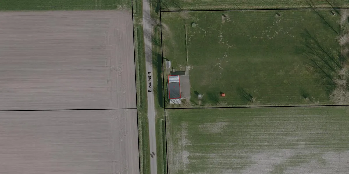 Het perceel waarop Bietenweg 2 staat heeft een oppervlakte van 1,2 ha. Dit is een zeer groot perceel. De perceeloppervlakte wordt geregistreerd door het Kadaster. Gedetailleerde informatie over de maten van dit perceel kunt u vinden in het rapport Kadastrale kaart met maatvoering van Bietenweg 2.