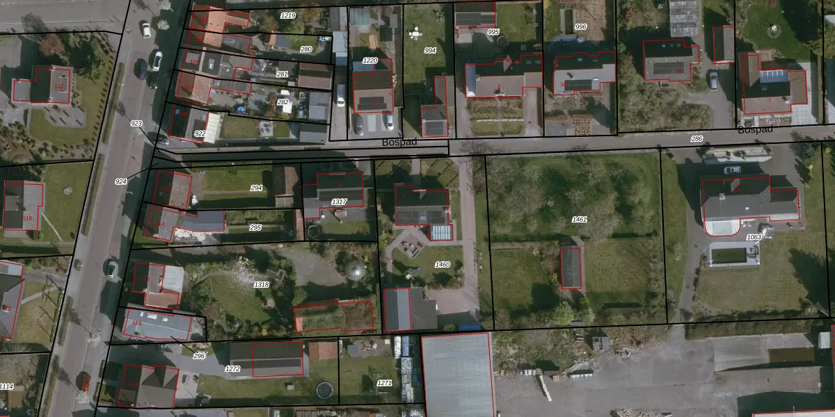 Het perceel waarop Bospad 4 staat heeft een oppervlakte van 1125 m². Dit is een zeer groot perceel. De perceeloppervlakte wordt geregistreerd door het Kadaster. Gedetailleerde informatie over de maten van dit perceel kunt u vinden in het rapport Kadastrale kaart met maatvoering van Bospad 4.