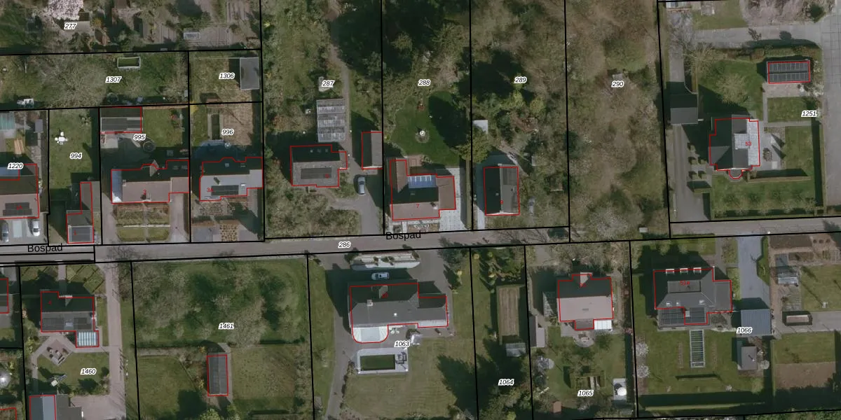 Het perceel waarop Bospad 7 staat heeft een oppervlakte van 1525 m². Dit is een zeer groot perceel. De perceeloppervlakte wordt geregistreerd door het Kadaster. Gedetailleerde informatie over de maten van dit perceel kunt u vinden in het rapport Kadastrale kaart met maatvoering van Bospad 7.