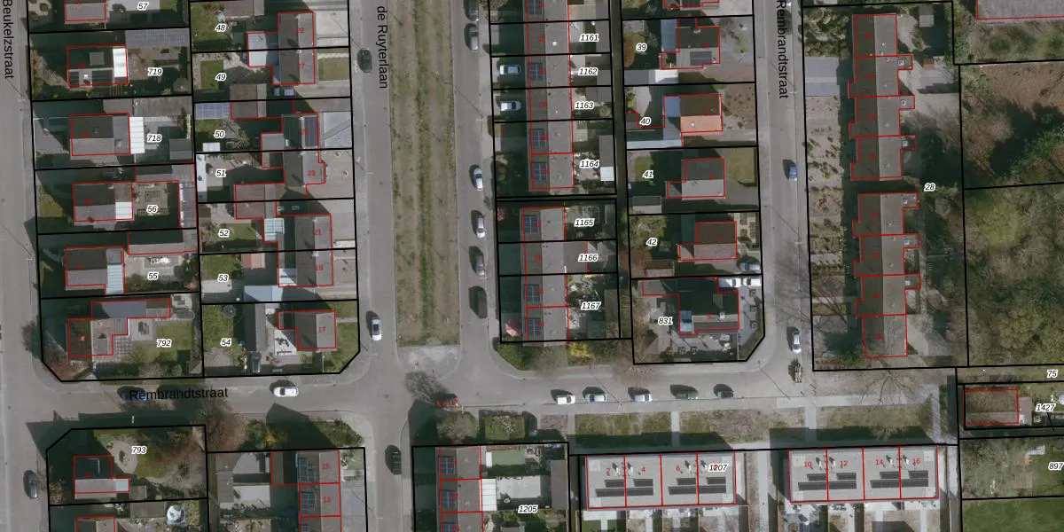 Het perceel waarop de Ruyterlaan 20 staat heeft een oppervlakte van 142 m². Dit is een middelgroot perceel. De perceeloppervlakte wordt geregistreerd door het Kadaster. Gedetailleerde informatie over de maten van dit perceel kunt u vinden in het rapport Kadastrale kaart met maatvoering van de Ruyterlaan 20.