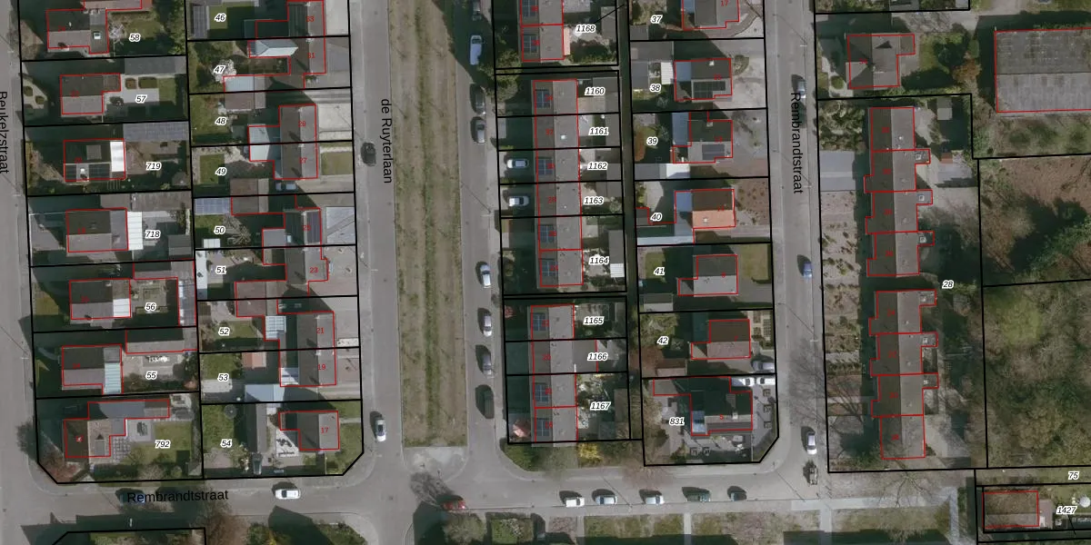 Het perceel waarop de Ruyterlaan 24 staat heeft een oppervlakte van 326 m². Dit is een groot perceel. De perceeloppervlakte wordt geregistreerd door het Kadaster. Gedetailleerde informatie over de maten van dit perceel kunt u vinden in het rapport Kadastrale kaart met maatvoering van de Ruyterlaan 24.