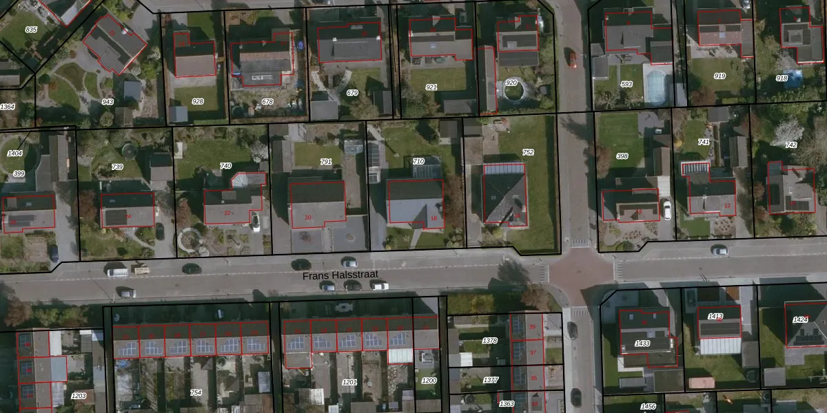 Het perceel waarop Frans Halsstraat 18 staat heeft een oppervlakte van 742 m². Dit is een groot perceel. De perceeloppervlakte wordt geregistreerd door het Kadaster. Gedetailleerde informatie over de maten van dit perceel kunt u vinden in het rapport Kadastrale kaart met maatvoering van Frans Halsstraat 18.
