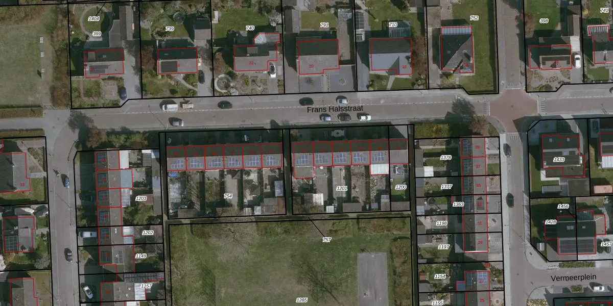 Het perceel waarop Frans Halsstraat 21 staat heeft een oppervlakte van 898 m². Dit is een groot perceel. De perceeloppervlakte wordt geregistreerd door het Kadaster. Gedetailleerde informatie over de maten van dit perceel kunt u vinden in het rapport Kadastrale kaart met maatvoering van Frans Halsstraat 21.