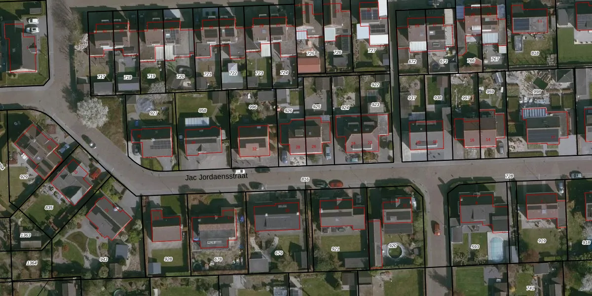 Het perceel waarop Jac Jordaensstraat 28 staat heeft een oppervlakte van 255 m². Dit is een middelgroot perceel. De perceeloppervlakte wordt geregistreerd door het Kadaster. Gedetailleerde informatie over de maten van dit perceel kunt u vinden in het rapport Kadastrale kaart met maatvoering van Jac Jordaensstraat 28.