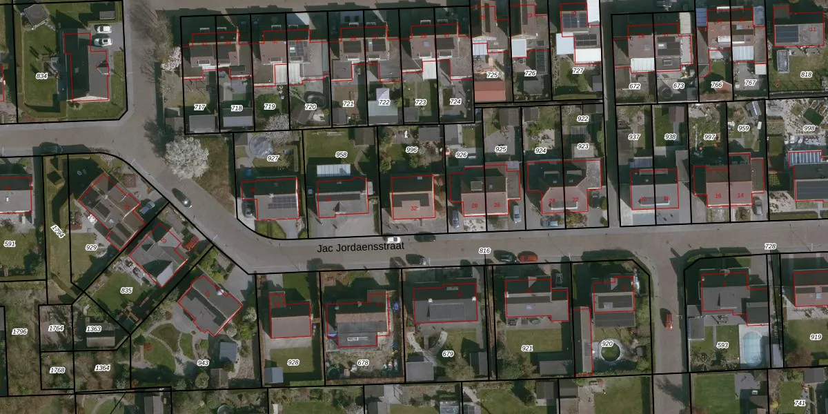 Het perceel waarop Jac Jordaensstraat 32 staat heeft een oppervlakte van 425 m². Dit is een groot perceel. De perceeloppervlakte wordt geregistreerd door het Kadaster. Gedetailleerde informatie over de maten van dit perceel kunt u vinden in het rapport Kadastrale kaart met maatvoering van Jac Jordaensstraat 32.
