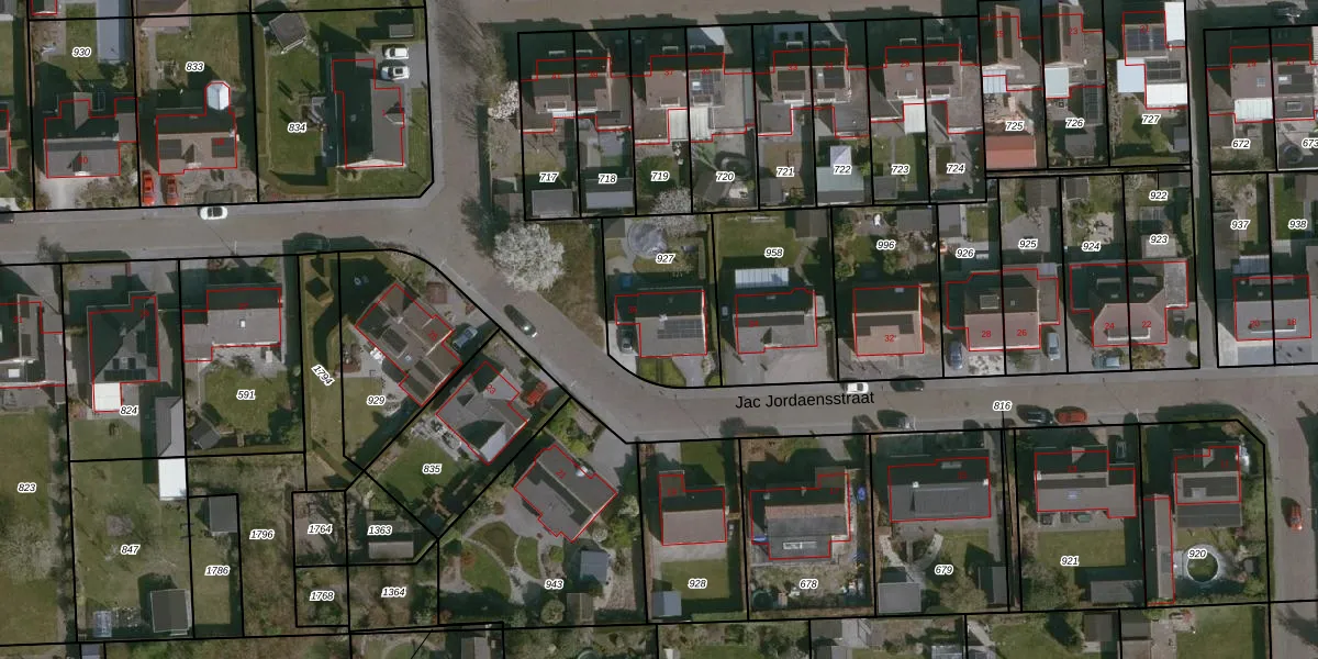 Het perceel waarop Jac Jordaensstraat 36 staat heeft een oppervlakte van 425 m². Dit is een groot perceel. De perceeloppervlakte wordt geregistreerd door het Kadaster. Gedetailleerde informatie over de maten van dit perceel kunt u vinden in het rapport Kadastrale kaart met maatvoering van Jac Jordaensstraat 36.