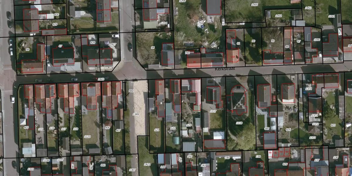 Het perceel waarop Kerkstraat 23 staat heeft een oppervlakte van 380 m². Dit is een groot perceel. De perceeloppervlakte wordt geregistreerd door het Kadaster. Gedetailleerde informatie over de maten van dit perceel kunt u vinden in het rapport Kadastrale kaart met maatvoering van Kerkstraat 23.