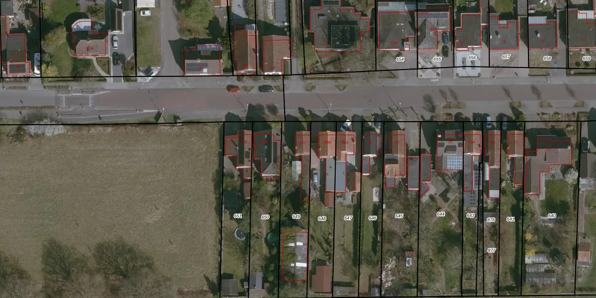Gebruik de zoekbalk of klik op een perceel voor informatie over de adressen binnen dit perceel.