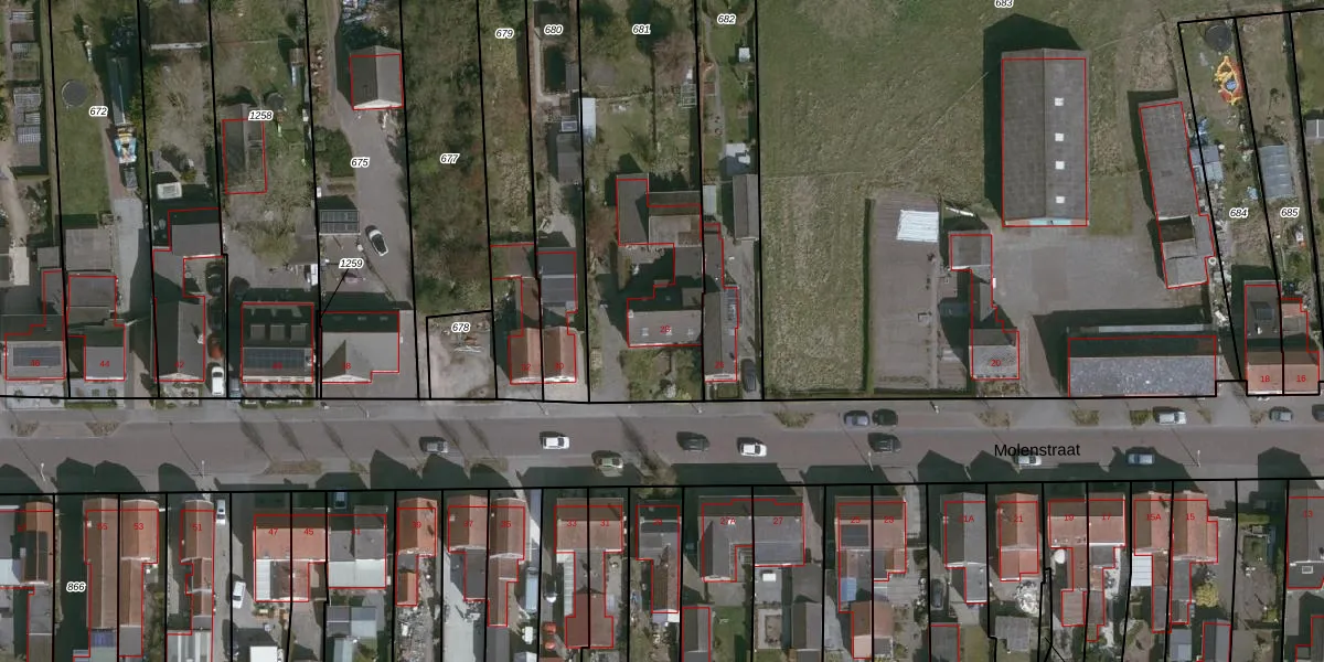 Gebruik de zoekbalk of klik op een perceel voor informatie over de adressen binnen dit perceel.
