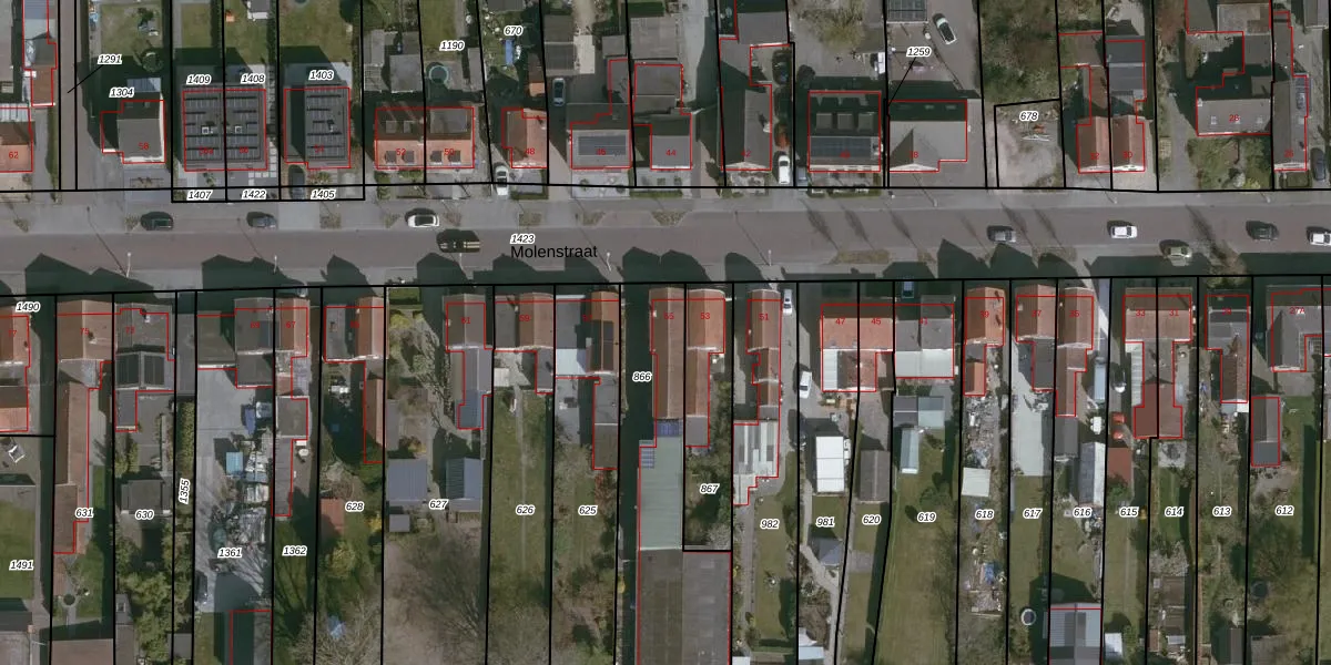 Het perceel waarop Molenstraat 55 staat heeft een oppervlakte van 750 m². Dit is een groot perceel. De perceeloppervlakte wordt geregistreerd door het Kadaster. Gedetailleerde informatie over de maten van dit perceel kunt u vinden in het rapport Kadastrale kaart met maatvoering van Molenstraat 55.