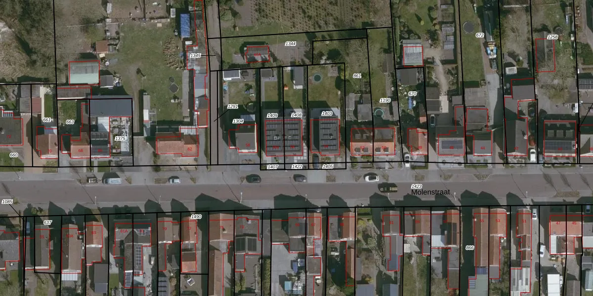 Molenstraat 56 is gelegen op kadastraal perceel HUL00K1408. Deze kadastrale aanduiding is uniek en wordt gebruikt door het Kadaster om eigendomsrechten en andere zakelijke rechten vast te leggen. Het perceel maakt onderdeel uit van de kadastrale gemeente Hulst.