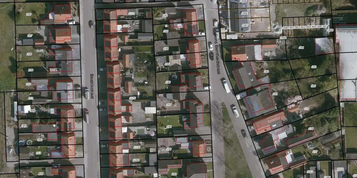 Het perceel waarop Prins Bernhardstraat 16-a staat heeft een oppervlakte van 368 m². Dit is een groot perceel. De perceeloppervlakte wordt geregistreerd door het Kadaster. Gedetailleerde informatie over de maten van dit perceel kunt u vinden in het rapport Kadastrale kaart met maatvoering van Prins Bernhardstraat 16-a.