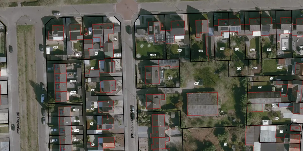 Het perceel waarop Rembrandtstraat 36 staat heeft een oppervlakte van 529 m². Dit is een groot perceel. De perceeloppervlakte wordt geregistreerd door het Kadaster. Gedetailleerde informatie over de maten van dit perceel kunt u vinden in het rapport Kadastrale kaart met maatvoering van Rembrandtstraat 36.