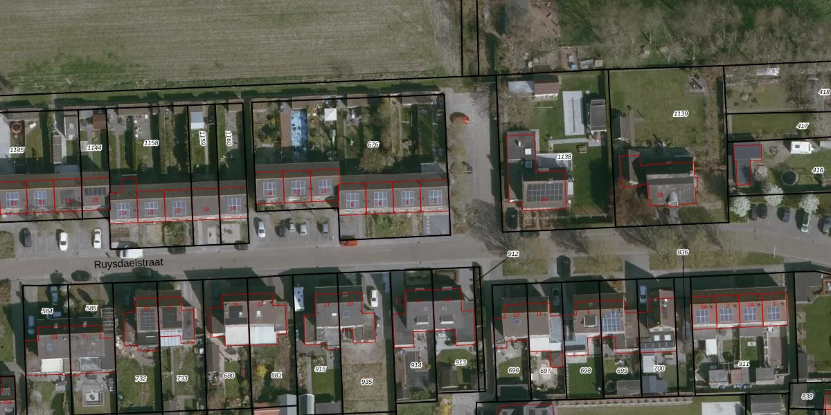 Het perceel waarop Ruysdaelstraat 4 staat heeft een oppervlakte van 1430 m². Dit is een zeer groot perceel. De perceeloppervlakte wordt geregistreerd door het Kadaster. Gedetailleerde informatie over de maten van dit perceel kunt u vinden in het rapport Kadastrale kaart met maatvoering van Ruysdaelstraat 4.
