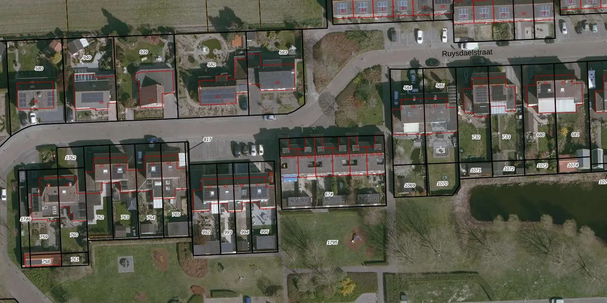 Het perceel waarop Ruysdaelstraat 43-A staat heeft een oppervlakte van 805 m². Dit is een groot perceel. De perceeloppervlakte wordt geregistreerd door het Kadaster. Gedetailleerde informatie over de maten van dit perceel kunt u vinden in het rapport Kadastrale kaart met maatvoering van Ruysdaelstraat 43-A.