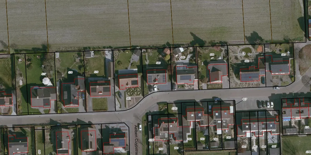 Het perceel waarop Ruysdaelstraat 48 staat heeft een oppervlakte van 524 m². Dit is een groot perceel. De perceeloppervlakte wordt geregistreerd door het Kadaster. Gedetailleerde informatie over de maten van dit perceel kunt u vinden in het rapport Kadastrale kaart met maatvoering van Ruysdaelstraat 48.