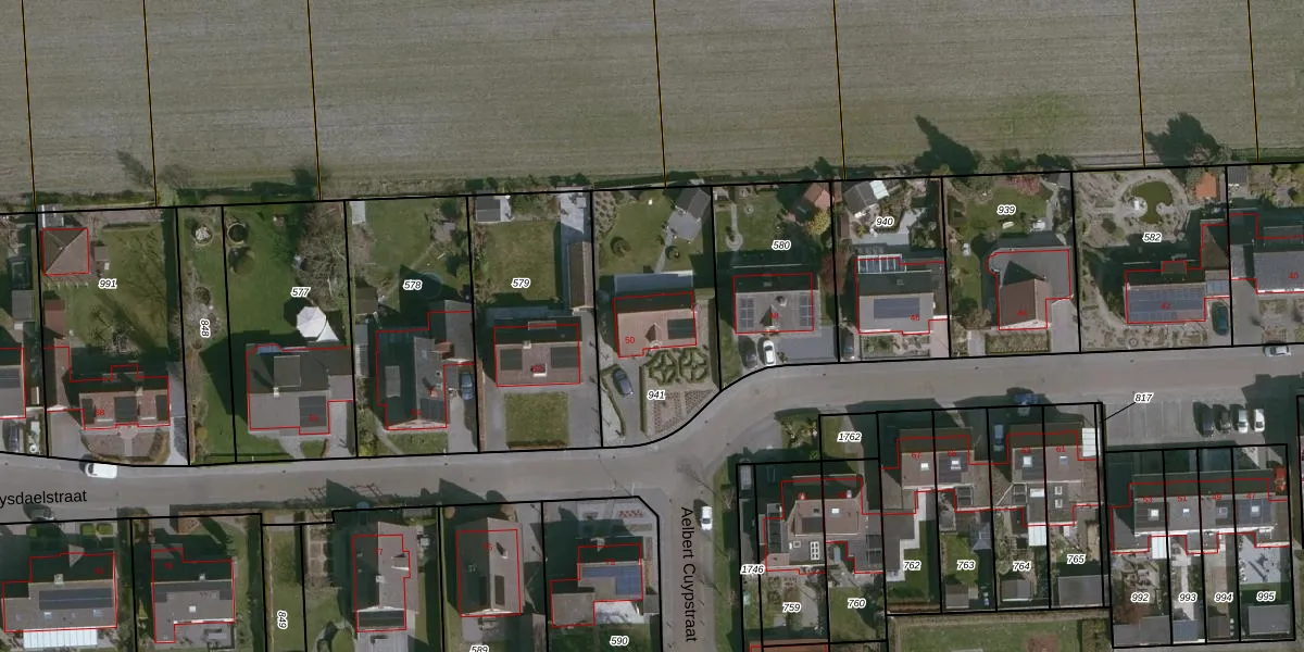 Het perceel waarop Ruysdaelstraat 50 staat heeft een oppervlakte van 688 m². Dit is een groot perceel. De perceeloppervlakte wordt geregistreerd door het Kadaster. Gedetailleerde informatie over de maten van dit perceel kunt u vinden in het rapport Kadastrale kaart met maatvoering van Ruysdaelstraat 50.