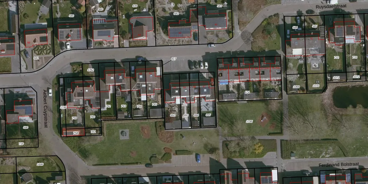 Gebruik de zoekbalk of klik op een perceel voor informatie over de adressen binnen dit perceel.