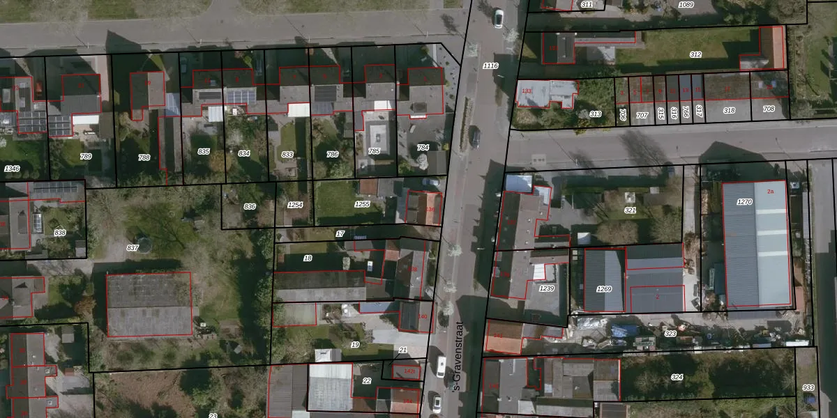 Het perceel waarop 's-Gravenstraat 136 staat heeft een oppervlakte van 358 m². Dit is een groot perceel. De perceeloppervlakte wordt geregistreerd door het Kadaster. Gedetailleerde informatie over de maten van dit perceel kunt u vinden in het rapport Kadastrale kaart met maatvoering van 's-Gravenstraat 136.