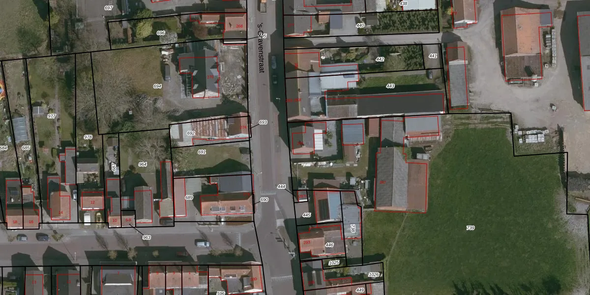 Het perceel waarop 's-Gravenstraat 285 staat heeft een oppervlakte van 5065 m². Dit is een zeer groot perceel. De perceeloppervlakte wordt geregistreerd door het Kadaster. Gedetailleerde informatie over de maten van dit perceel kunt u vinden in het rapport Kadastrale kaart met maatvoering van 's-Gravenstraat 285.