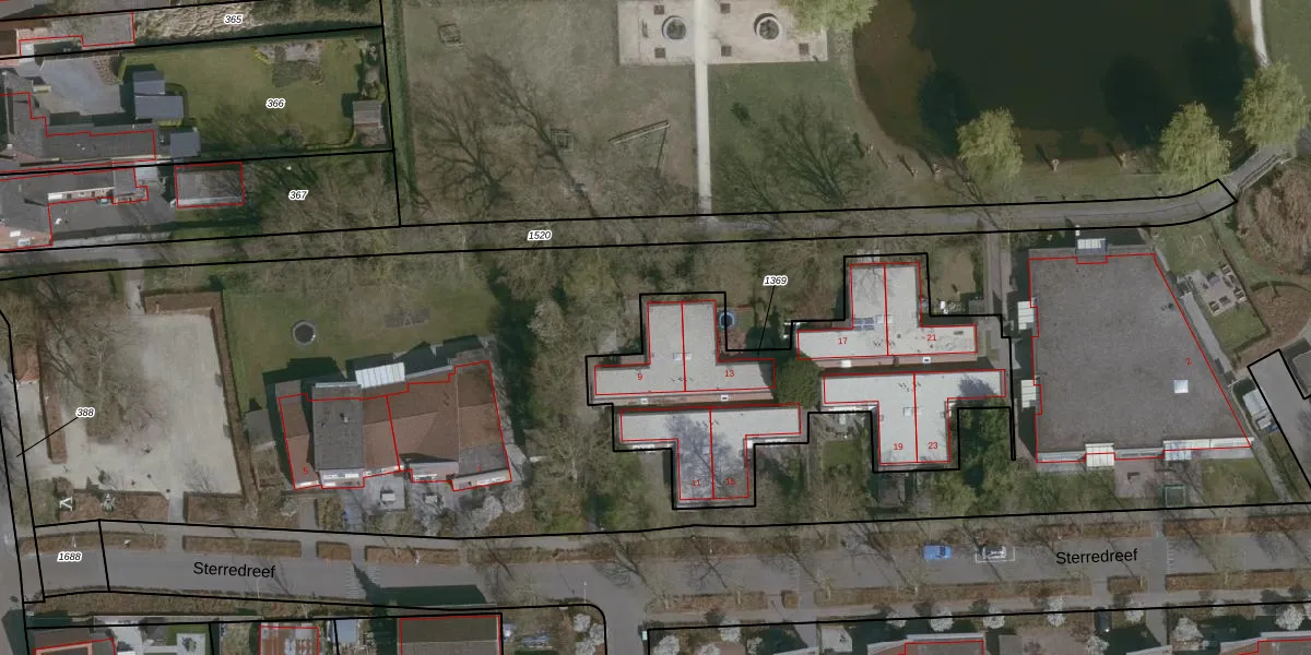 Sterredreef 9 is gelegen op kadastraal perceel HUL00R1369. Deze kadastrale aanduiding is uniek en wordt gebruikt door het Kadaster om eigendomsrechten en andere zakelijke rechten vast te leggen. Het perceel maakt onderdeel uit van de kadastrale gemeente Hulst.