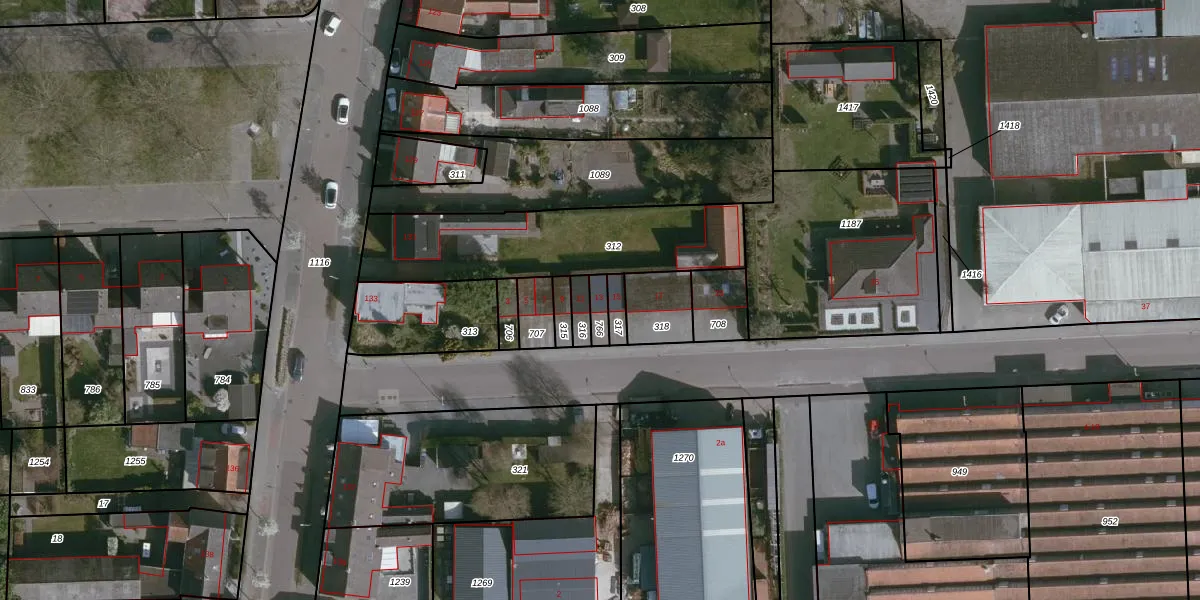 Gebruik de zoekbalk of klik op een perceel voor informatie over de adressen binnen dit perceel.